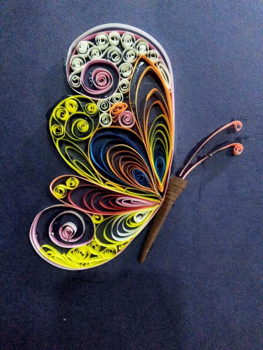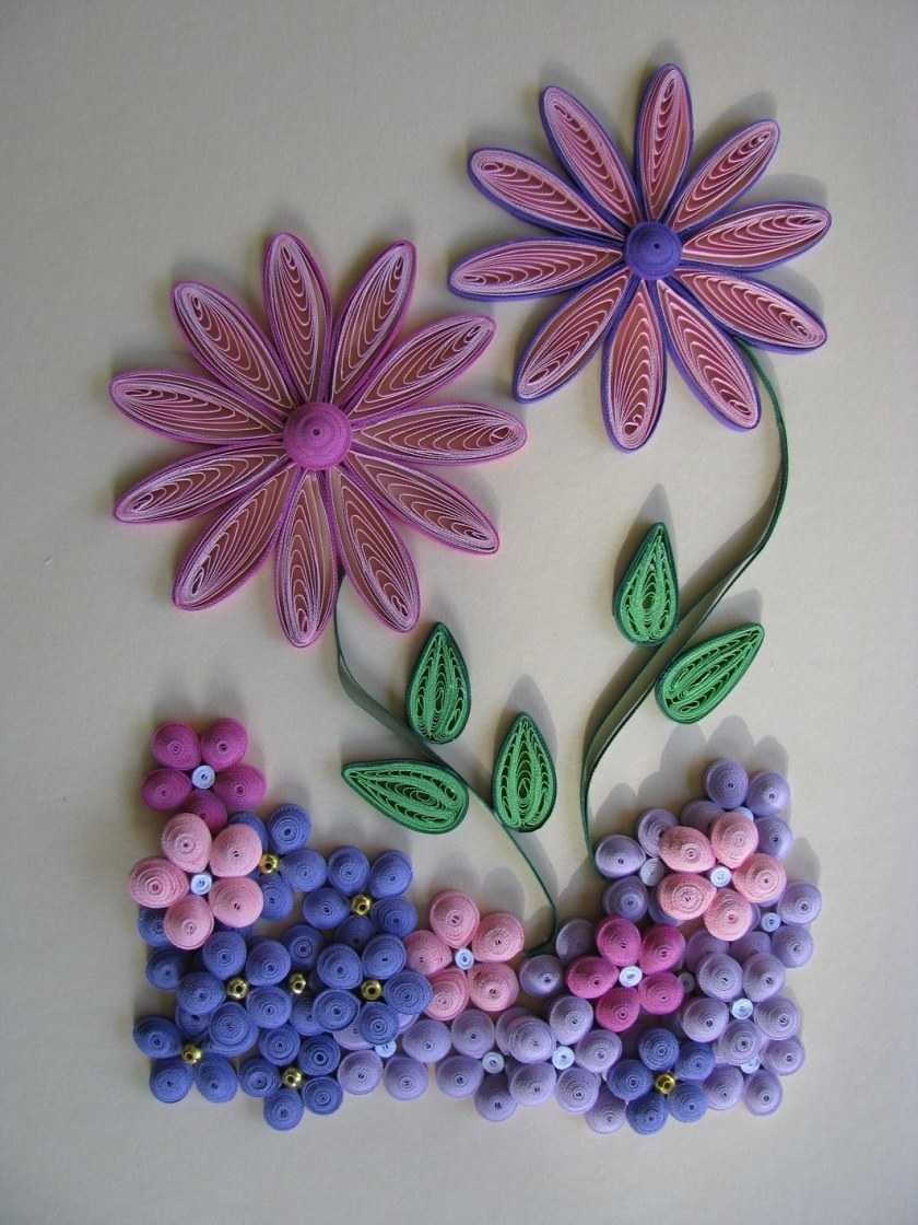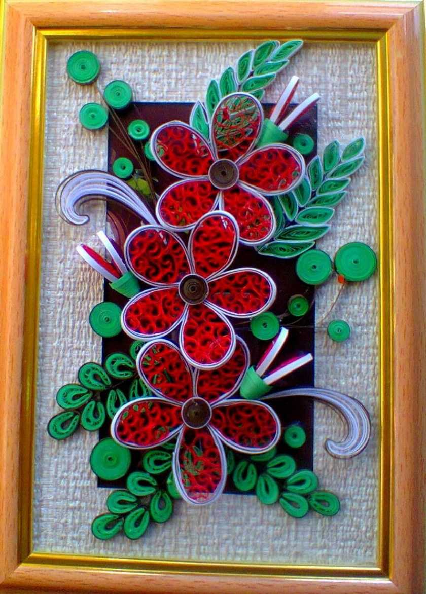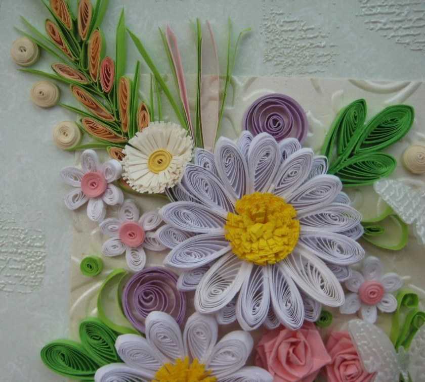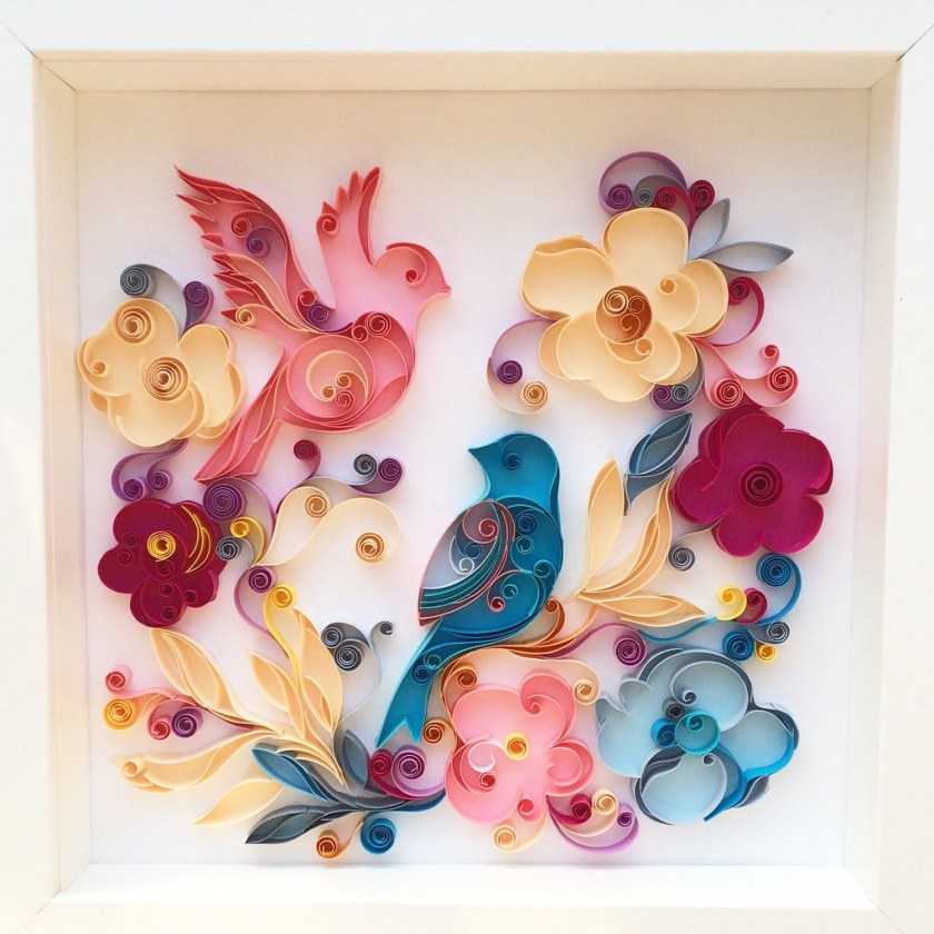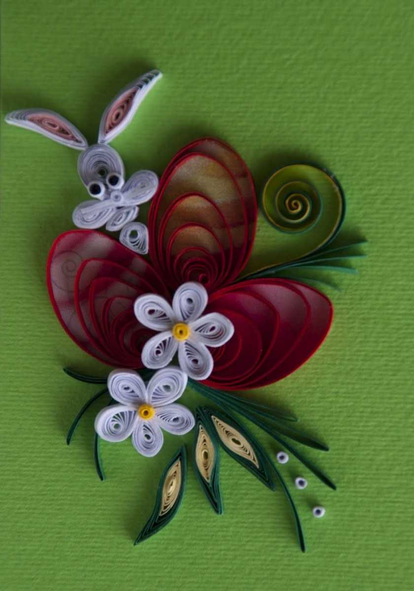 Это уникальная техника работы с бумагой и состоит из скручивания узких полосок бумаги в спирали, придания им нужной формы и выкладывание композиции из отдельных мелких элементов.