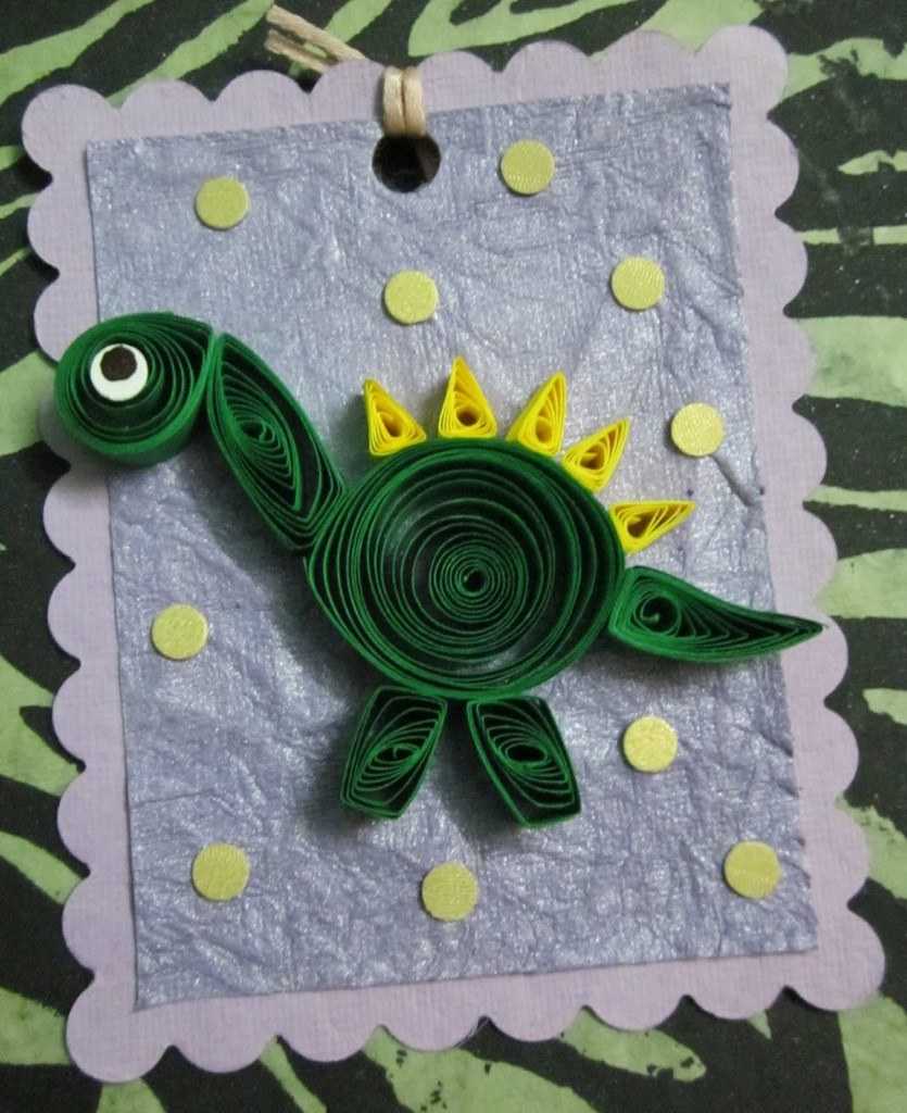 “Подарком” в технике квиллинг можно декорировать открытку или бирочку на подарок. Если не приклеивать элементы к основе, поделку можно использовать как самостоятельный декоративный элемент, например, как игрушку на елку.