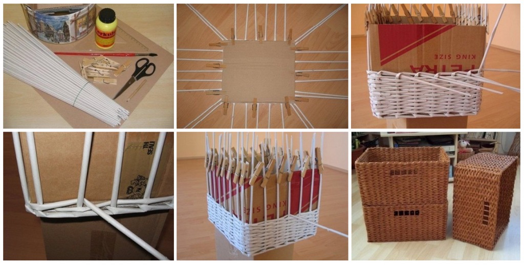 Еще один интересный вариант (но трудоемкий) — плетение корзин из газетных трубочек. Технология изготовления такова: