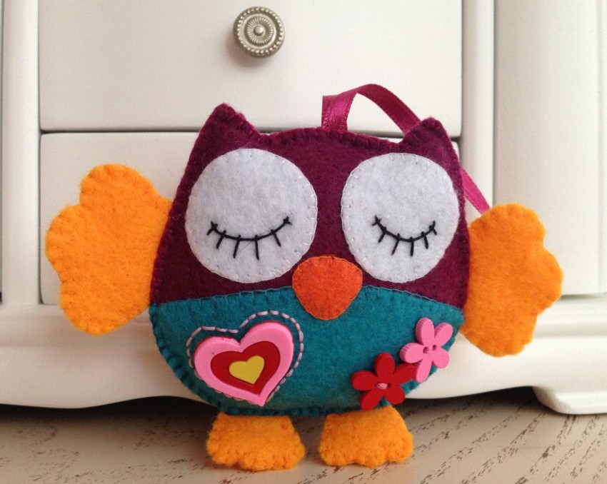 Еще вариант объемной совушки из фетра: