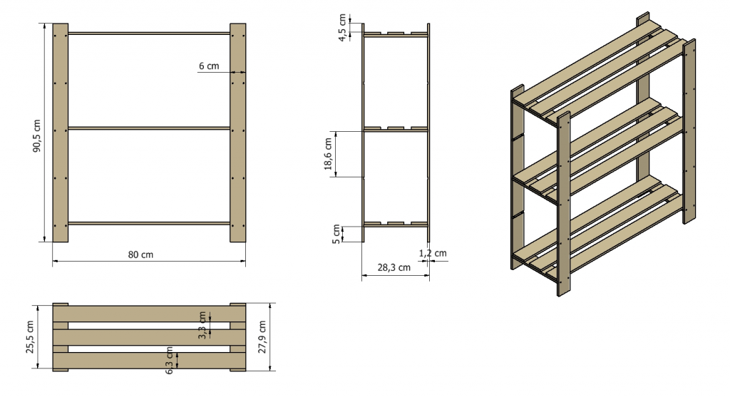 В любом случае работу начинают с выбора вида стеллажа. За этим последует составление чертежа. Даже если это простой вариант, схема с разметкой параметров будущего изделия потребуется для выполнения работ.