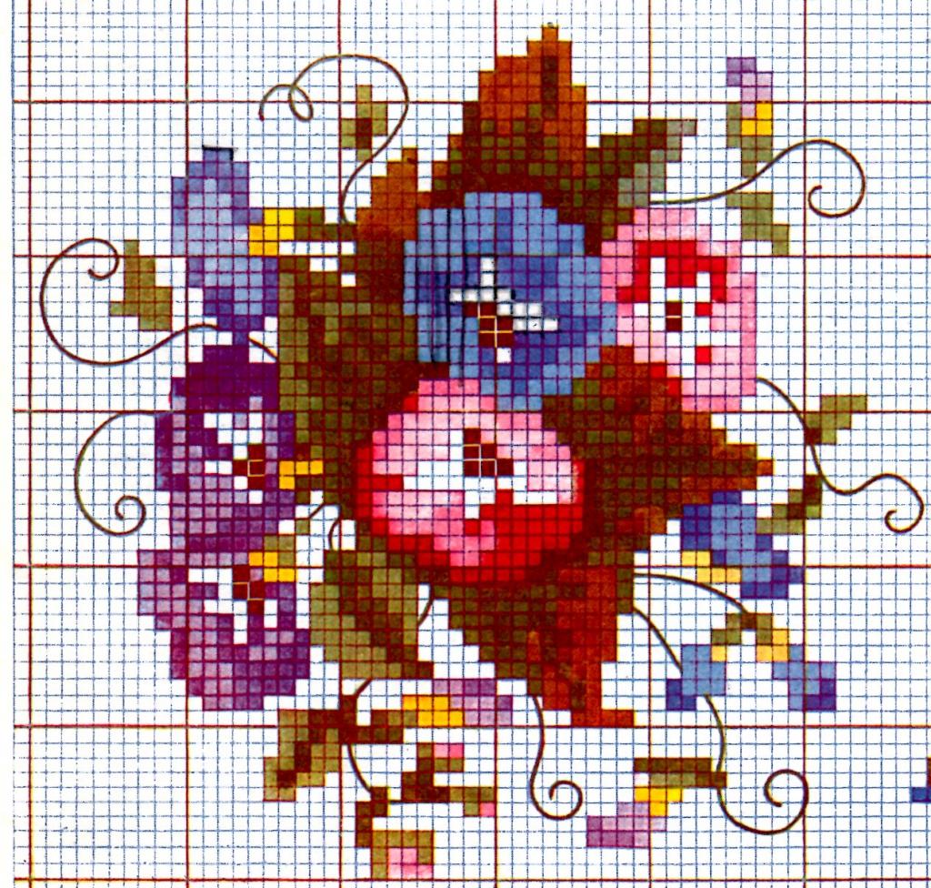 Из фруктов хочется попробовать много всего, поэтому надо сделать все! С указанием последовательных шагов схемы для вышивки крестом по клеточкам, вам будет легче выполнять работу.