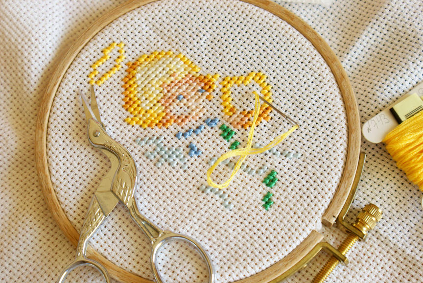 Использование пяльцев поможет не перетягивать ткань и не искривлять рисунок. А чистота рук перед каждым сеансом вышивки залог сохранения одного тона материала и цвета нитей в конце работы.
