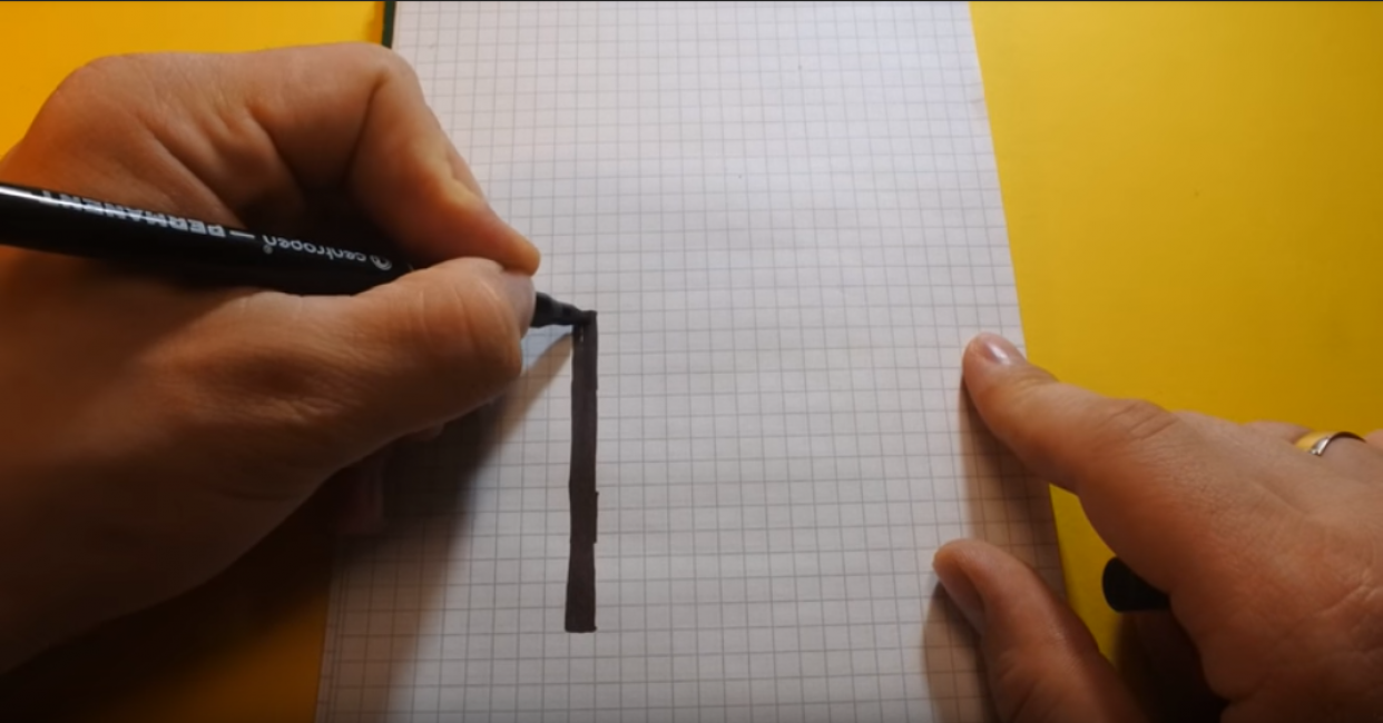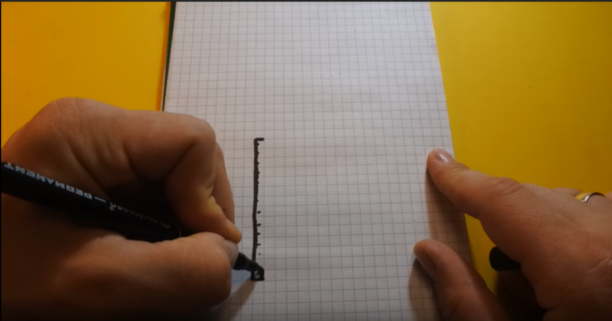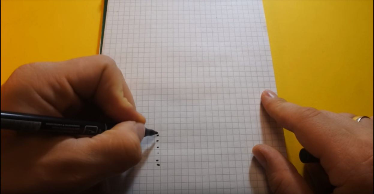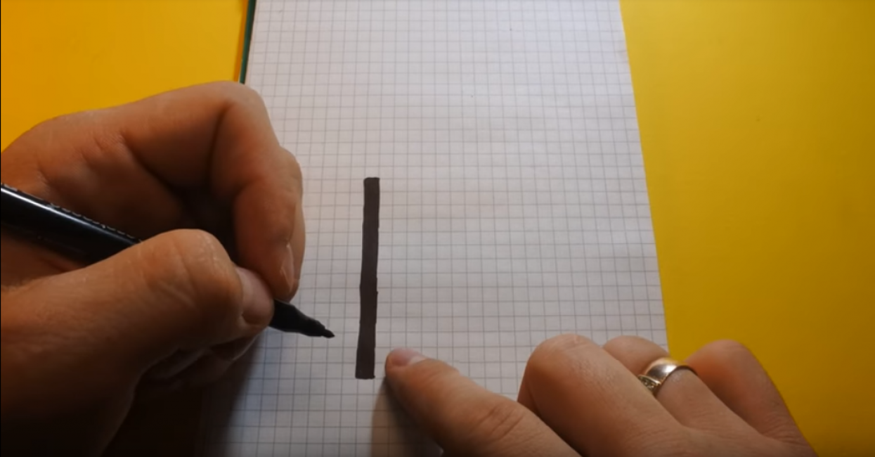 - Ближе к верхней стороне листа, в горизонтальном положении проводим линию длиной в три клеточки.