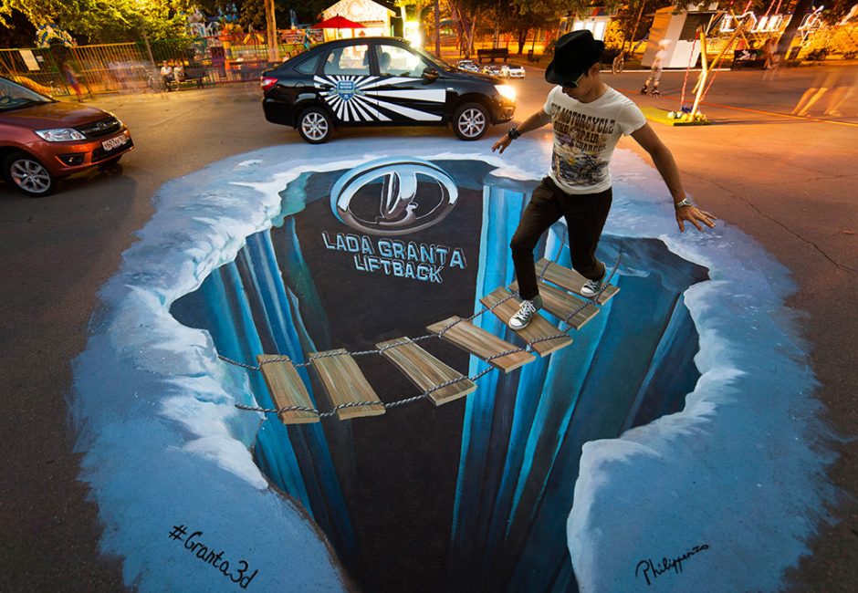Когда речь идет о рисовании на асфальте, многим приходят в голову детские картинки — домики, солнышки, цветочки. Но на самом деле многие художники мира специализируются на объемных 3D-картинах. И их они нередко рисуют именно на асфальте, чтобы впечатлить прохожих и заявить о себе.