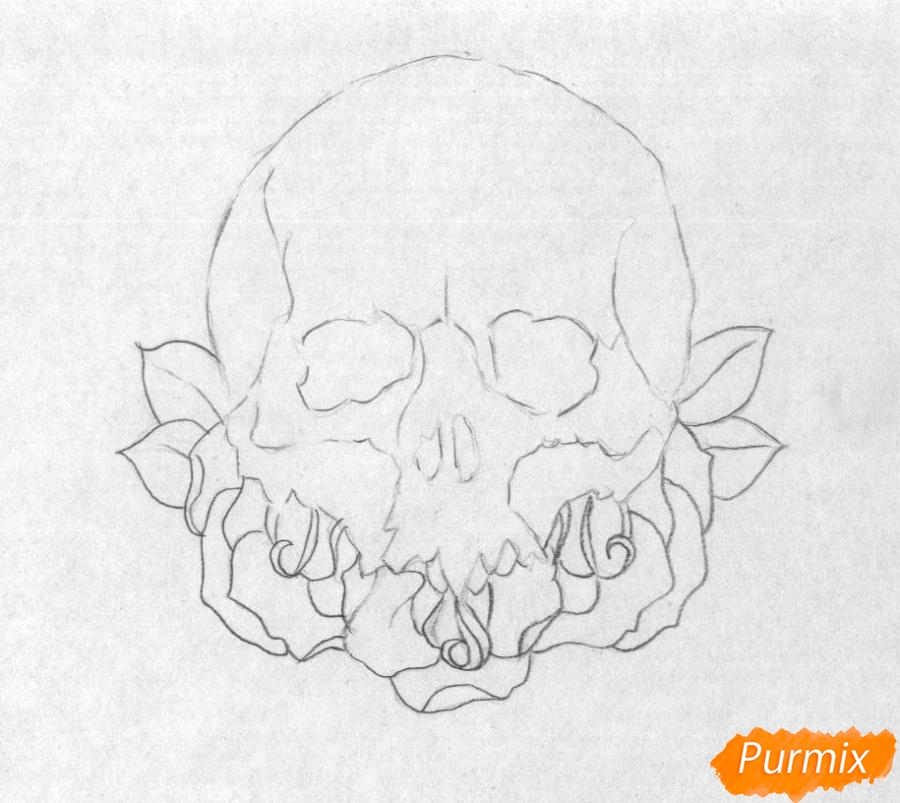 Как нарисовать череп с розами поэтапно