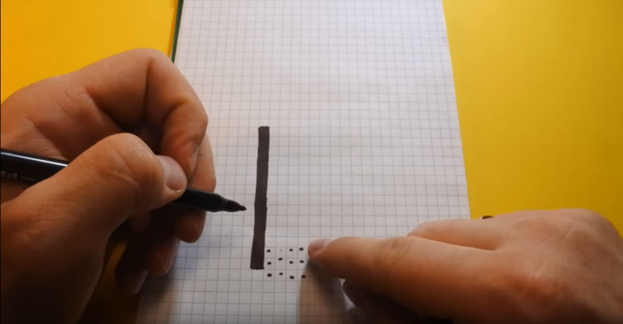 Снова проставьте точки-ориентиры. В данном случае человек закрашивает 4 ряда клеток — вы же должны ориентироваться на свой рисунок.