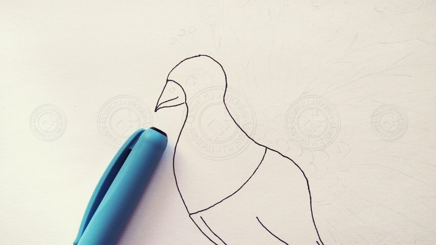 4. Нарисуйте перешеек, который отделяет оперение разного цвета.