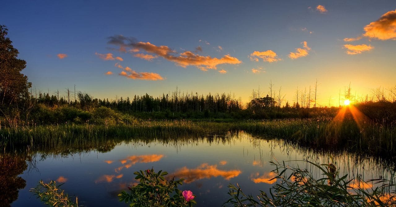 Отмечаем линию горизонта чуть ниже середины, а также силуэты берегов.