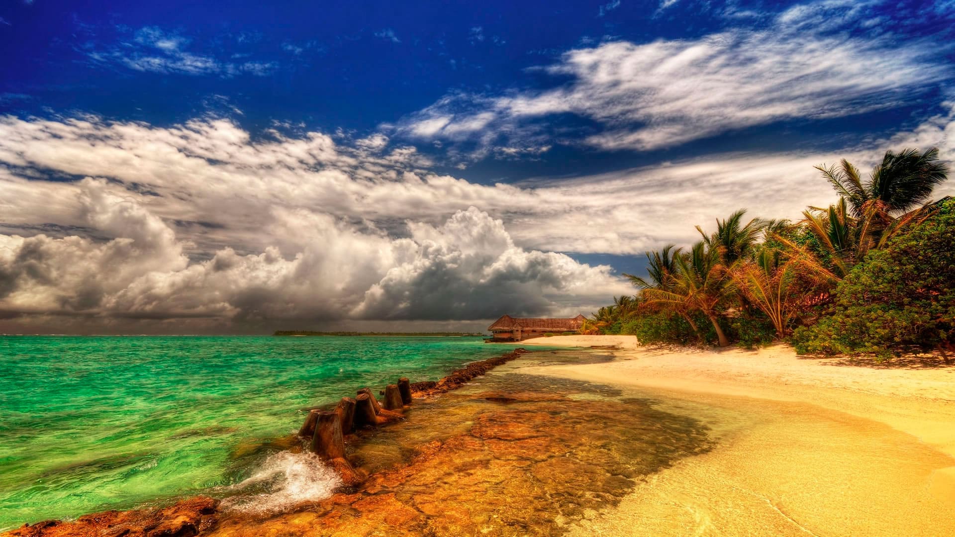 Третье изображение включает в себя тонированное небо и облака. Облака добавляют глубину к сцене.