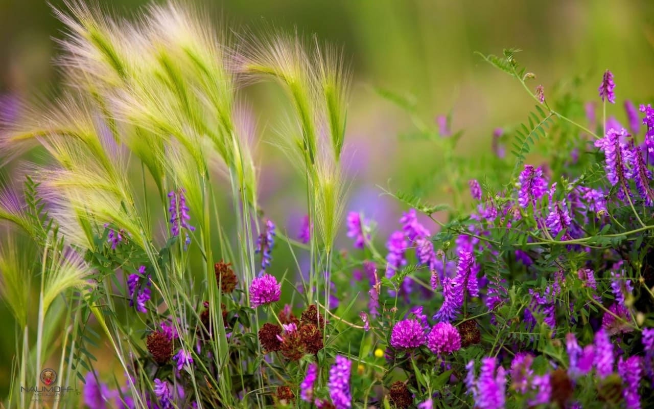 Желтой краской прорисовываем силуэт колосьев пшеницы по левому нижнему борту. Сначала изобразите основу полоской, а затем нанизывайте лепестки. Более темным оттенком вырисовываем прожилки.