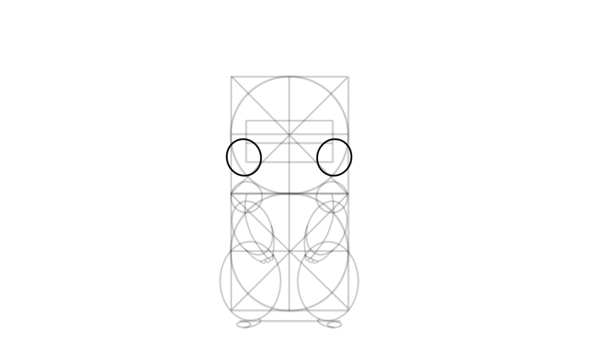 В верхних углах прямоугольника рисуем глаза. Сделайте их слегка овальными, так персонаж будет выглядеть милее.