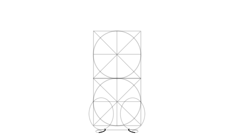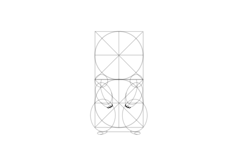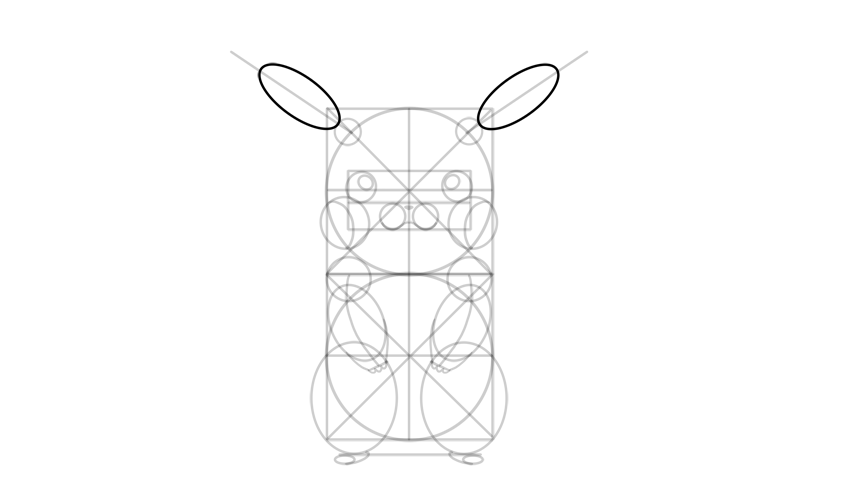 На нижнем квадрате рисуем бедра Пикачу в виде двух овалов.