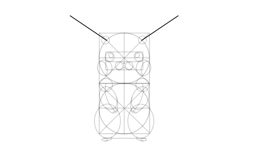 На вспомогательных линиях нарисуйте ушки и кончики сделайте черными.