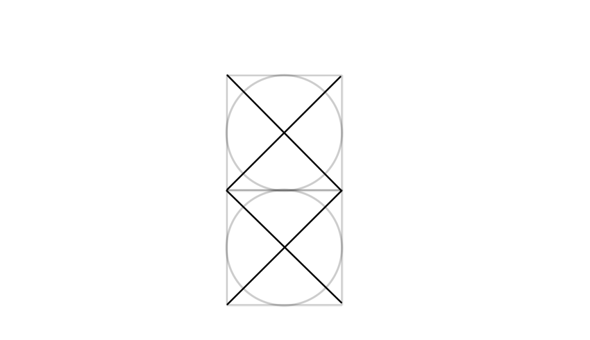 Теперь в центре каждого квадрата рисуем горизонтальные линии. Затем под нижним квадратом проводим горизонтальную линию.