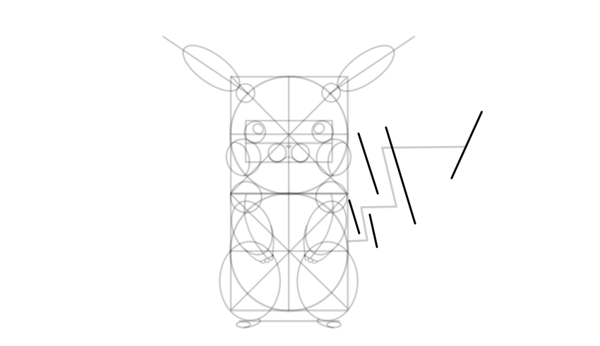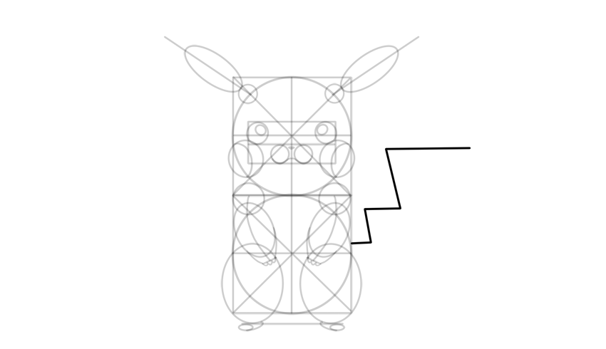 - Хвостик покемона изображают в виде молнии, располагая с правой стороны туловища.