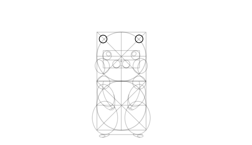 В верхней части головы рисуем две маленькие окружности – это основа для ушей.