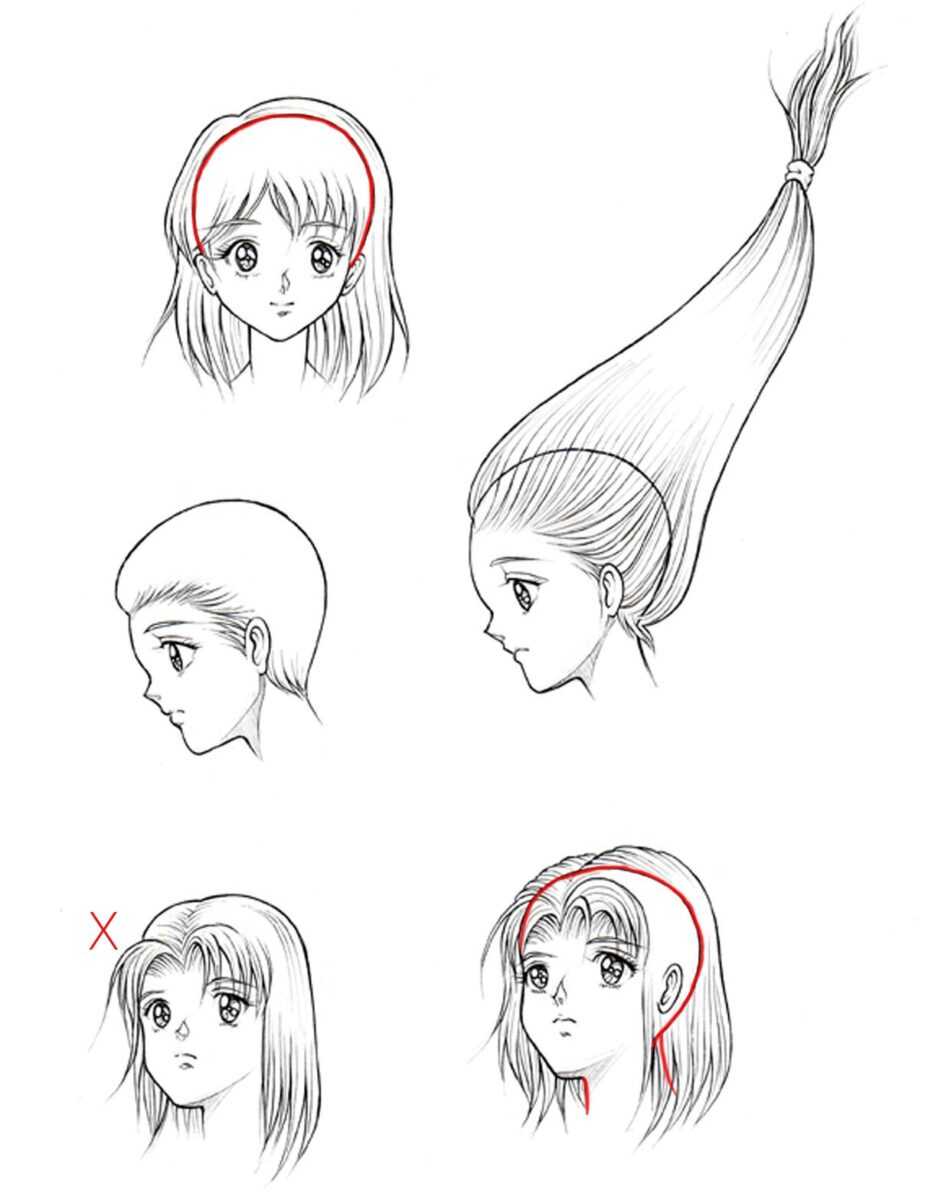 Волосы аниме часто основаны на реальных прическах. Но, как правило, рисуются в виде пучков, а не детализируются слишком тщательно. Особенно это касается причесок аниме для девушек. Одна из веских причин этого заключается в том, что при рисовании мультипликации или комиксов манги, потребуется очень много времени на что-то слишком детальное. Легкий способ в рисовании аниме-волос состоит в поэтапном рисунке причесок аниме. Просто разделите рисунок прически аниме на несколько шагов и вы увидите как это легко – рисовать волосы аниме!