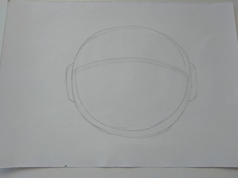 Шаг 2. Далее проведем двойную линию у лба и подбородка. По бокам сделаем уплотнения на уши.